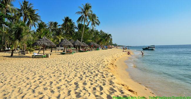 Còn được gọi là bãi Kem, nằm ở nam đảo Phú Quốc, mang hình cánh cung được bao bọc giữa hai dãi núi, các ở đây rất mịn và trắng như cái tên của nó.